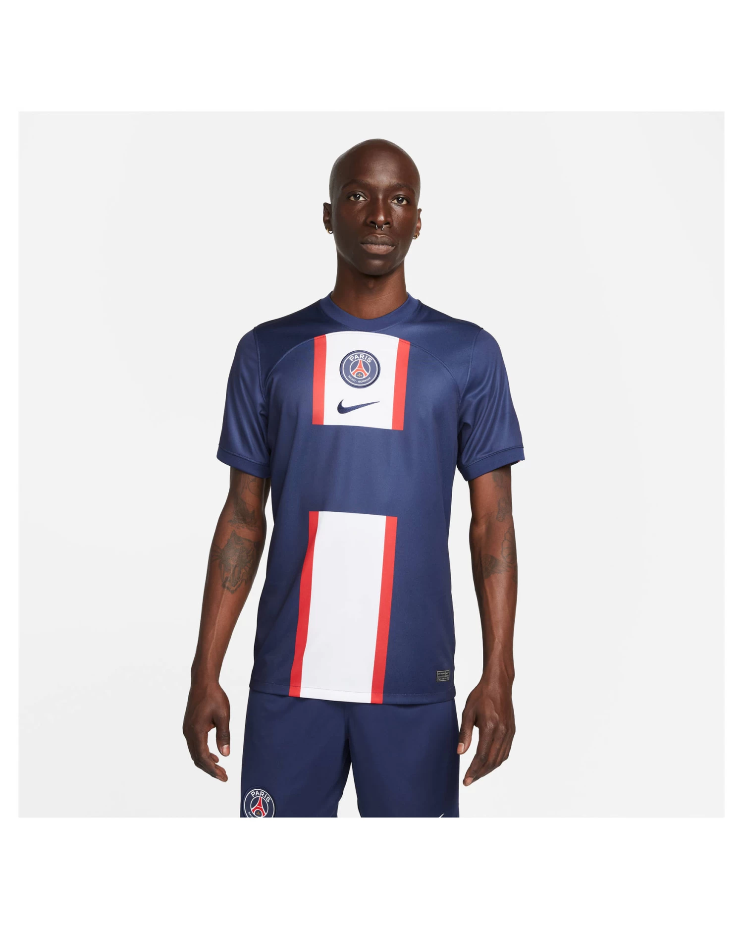 Das Fußballtrikot Paris Saint-Germain 2022/23 Stadium Home in der Replica-Version verleiht dir den Look deiner Lieblingsspieler. Das schweißableitende Nike Dri-Fit Material ist leicht, atmungsaktiv und besteht zu 100% aus Recycling-Fasern.
